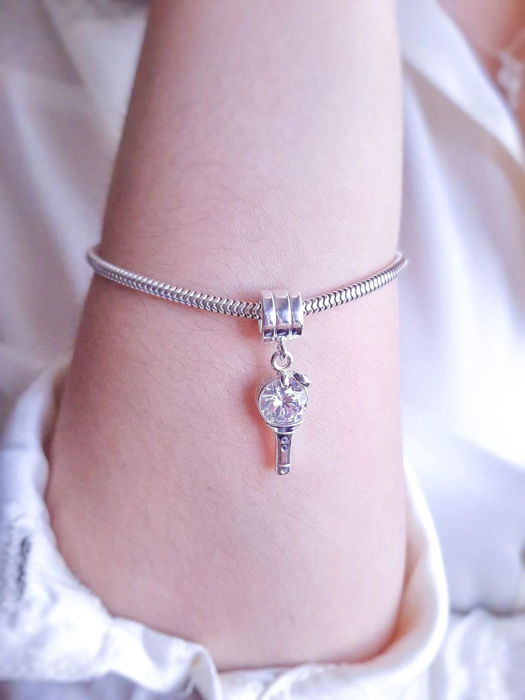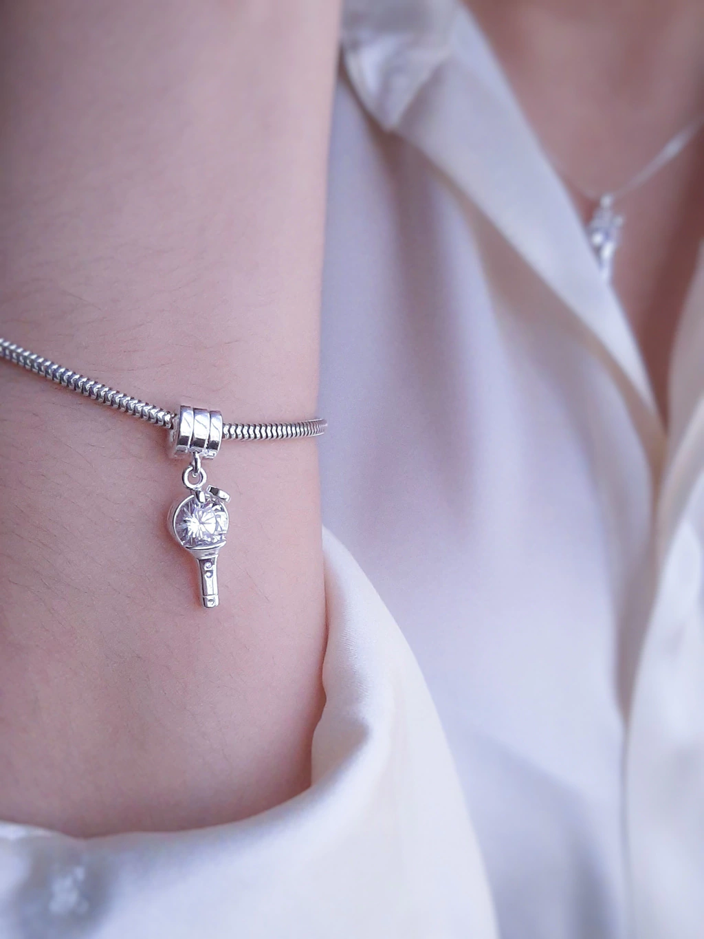 Charm con colgante en forma de ArmyBomb con piedra central en circonitas cristal y 3 mini circonitas moradas tachonadas en los detalles. Chapado en plata de 60 mil.